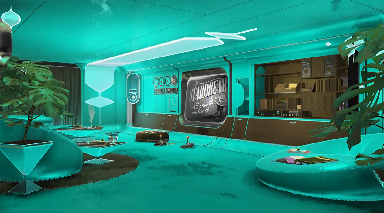 Stardream se place dans une science-fiction où la construction visuelle a de l’importance, et où l’ambiance se joue autant dans les volumes, la lumière et les détails que dans la narration pure. C’est aussi un bon moyen de donner une identité forte au jeu sans dépendre uniquement d’un concept “vu mille fois”. Ici, l’idée d’utopie spatiale et de message perturbateur devient plus intéressante si l’environnement donne déjà des indices sur les valeurs, les règles et les contradictions du lieu.