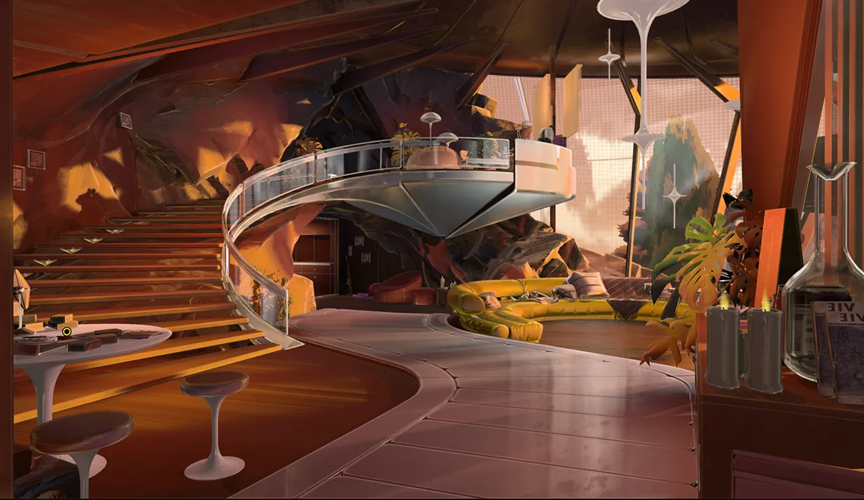 Le Space Age n’est pas utilisé comme un décor “cool” posé par-dessus le scénario. Rebel Pixel veut que la direction artistique participe à la lecture du monde: l’architecture, les objets, les véhicules et l’organisation des espaces doivent raconter quelque chose sur la société de la station. C’est une approche qui colle bien à l’enquête: quand un jeu vous demande d’observer, de comprendre et de recouper, la mise en scène doit être lisible et cohérente.