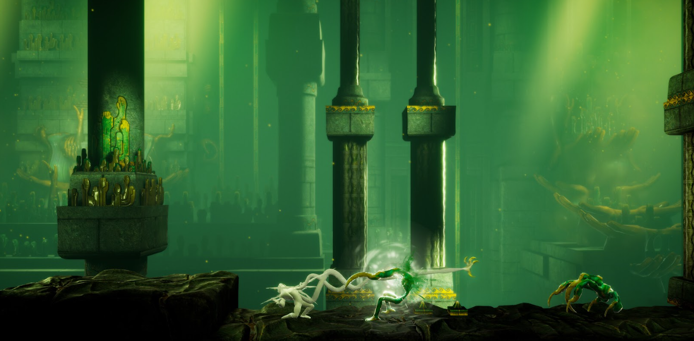 Dès les premières minutes, Grime 2 impose une évidence : son univers reste sa plus grande force. Le jeu nous plonge dans un monde façonné par des créations artistiques incarnées, où chaque zone semble être une œuvre vivante. Cette approche confère au titre une identité visuelle immédiatement reconnaissable, presque organique dans sa manière de raconter son monde.